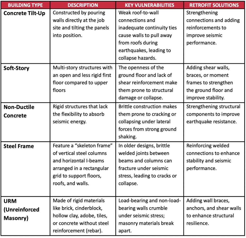 From concrete tilt-ups to soft-story apartments with open ground floors, each type of commercial building faces unique challenges when it comes to withstanding seismic forces. Knowing the risks and the solutions available is crucial for property owners who want to protect their assets and ensure occupant safety.